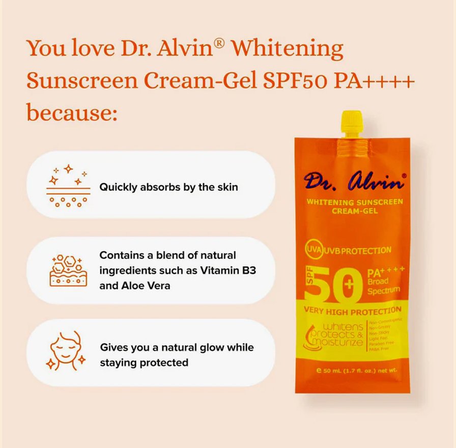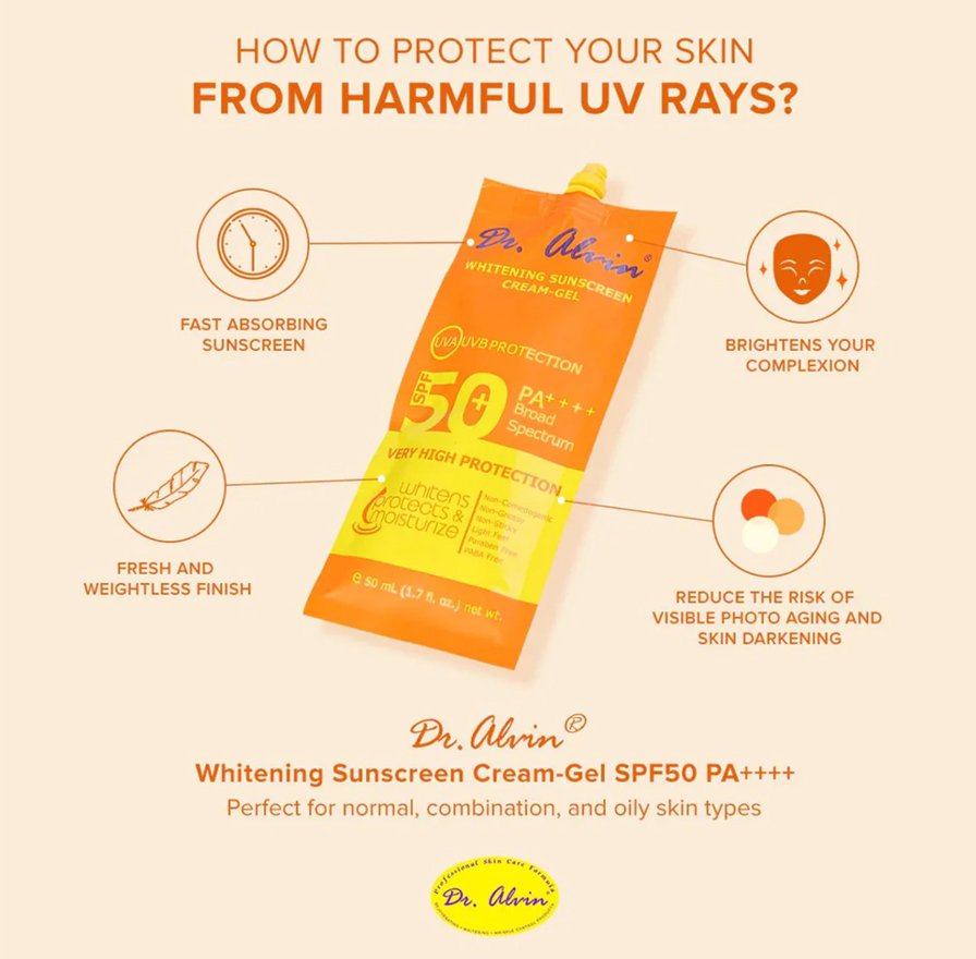 Study shows that wearing Sunscreen everyday protects and helps slowdown our skin’s aging process. Rain or shine, indoors or outdoors, make it a habit to always wear Dr. Alvin Whitening Sunscreen Creamgel SPF50++++ to retain your skin’s healthy and youthful appearance!